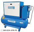 200 literParise SO-CC4-270 CE olajmentes orvosi kompresszor zajcsökkentett, V elrendezésű kéthengeres, speciális dug.gyűrűs kompresszor, 270 l tartállyal, háromfázisú motorral, extra hűtéssel és hűtveszárítóval.